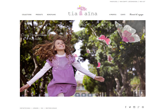 Tia-Aïna : Ready-to-wear brand for little girls. Graphic creation of a site e-commerce thanks to Prestashop.Creation of a Prestashop Responsive Design template to stick as closely as possible to the client's requirement from a graphic point of view. Integration of Videos on product sheets.